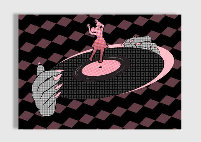 Norris blends bold pop art with a love of music in this vibrant piece. A young girl - symbolising the inner child—tries to balance on a spinning vinyl, held by unseen hands. It captures that universal feeling of life moving fast, sometimes out of our control, while we do our best to stay steady. Playful, nostalgic, and deeply human, this artwork is a reminder that we’re all just trying to find our balance.
